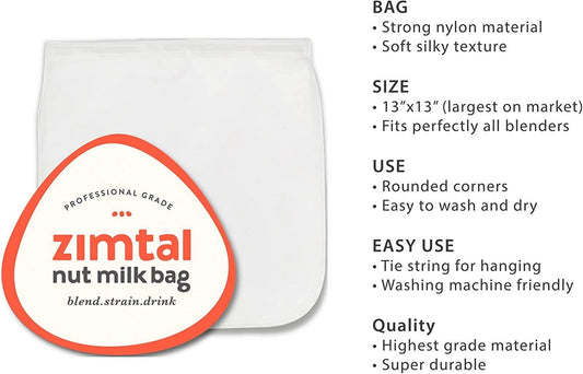 Premium Quality - Nut Milk Bag - XL - 13 " X 13 " - Smoothie Strainer - Cold Brew Coffee Maker- Free Recipes Included - Reusable - Filter Bag - Professional Industry